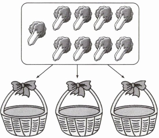 把9棵白菜平均分到3个篮子里,每个篮子里有( )棵。