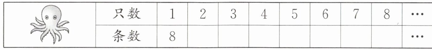 章鱼,又叫八爪鱼。1只章鱼有八条“爪”,那么2只、3只、4只、5只……有多少条“爪”呢?
