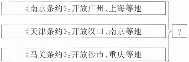 【思路导析】根据所学知识可知,《南京条约》开放通商口岸,列强侵略的还是东南沿海地区;《天津条约》使列强侵略范围开始深入沿江地区;《马关条约》使外国侵略势力进一步深入中国腹地:反映了列强侵略范围的扩大。