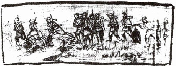 例1 如图是新中国的将军外交家黄镇在1935年创作的一幅漫画,这幅画定格了戎马倥偬的战争岁月。下列诗歌与之反映的史实相符的是( )