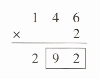 3. 画画可以提高学生的审美能力,陶冶情操。1本绘画本2元,三年级有学生146人,每人1本,一共需要多少钱?用算式“$146×2$”解决。下面竖式中的“92”表示(
