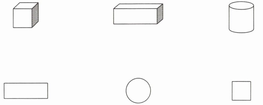 从上面看这几个立体图形,看到的形状分别是什么? 连一连。