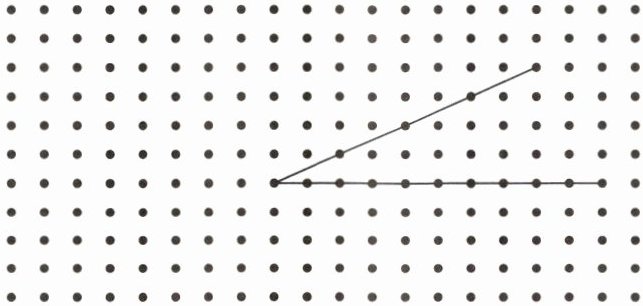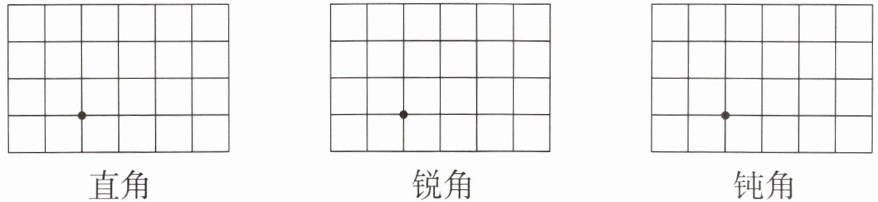 钝角:以给定的点为顶点,沿方格线画两条线,使夹角大于直角(如一条水平向右,另一条向左下较平缓方向)。