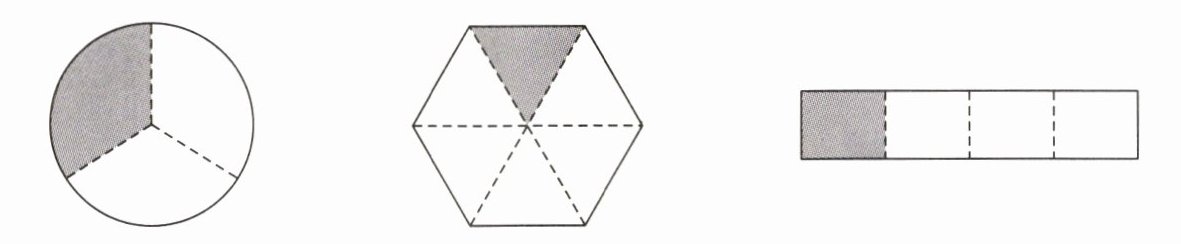 3. 下面各图中的涂色部分是整个图形的几分之几?请你用分数表示出来。