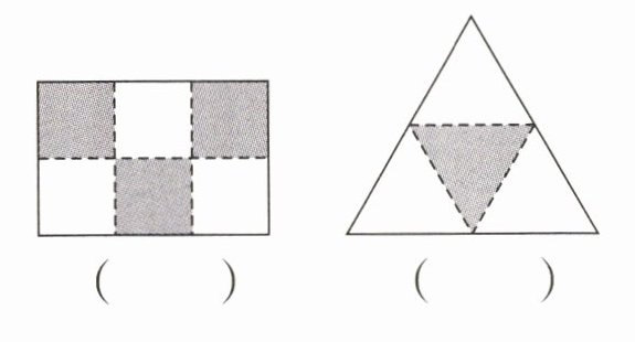 观察第一个图形(梯形),它被分成了3个部分,我们需要涂其中的2个部分(除去中间三角形的另外两部分)。