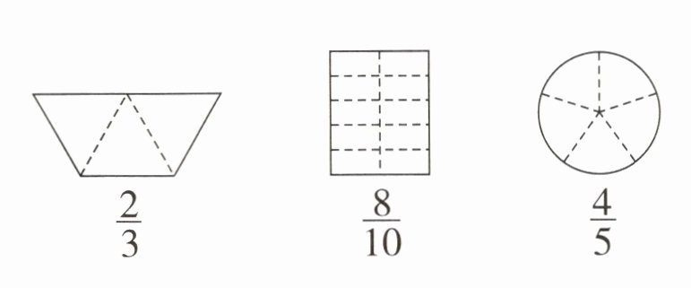 分数$\frac{2}{3}$表示把一个整体平均分成3份,取其中的2份。