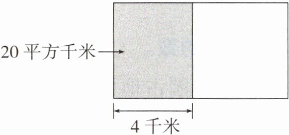 一块长方形草地,如果宽不变,长减少4千米,那么面积就减少20平方千米,这时草地变成了一个正方形(如图)。如果原来这块草地的长和宽同时增加5千米,那么它的面积会变成多少平方千米?