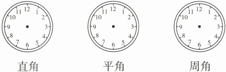 时针和分针在几时整能成直角?平角呢?周角呢?画一画。