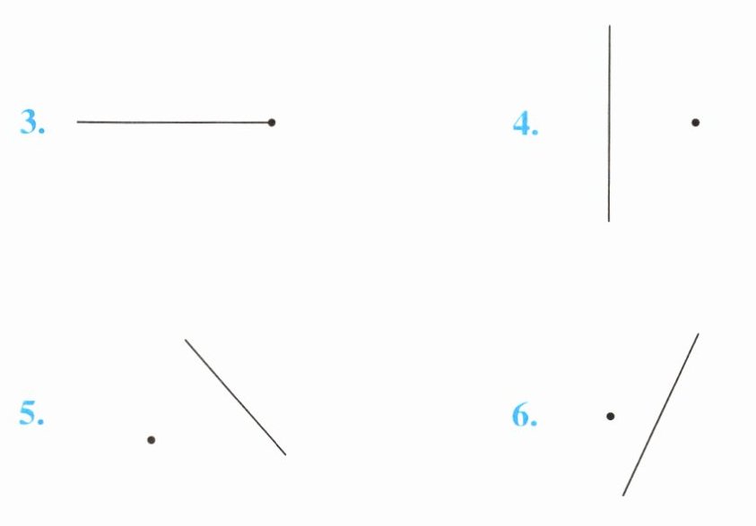 三、我会画。(分别过下面的点,画出已知直线的垂线)