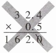 错因分析:错解错在受小数加、减法中小数点对齐的影响,将乘积的小数点和因数的小数点对齐了。两个一位小数相乘,积应是两位小数,且一定要先点积中的小数点,再去掉小数部分末尾的 0。