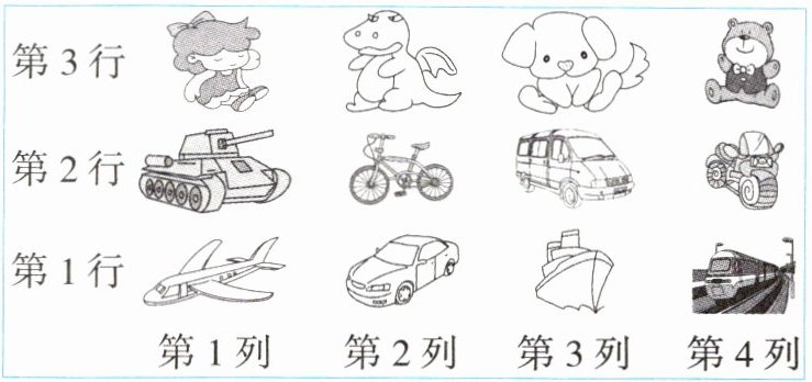二、同学们玩套圈游戏,下面是各种玩具的摆放位置。
