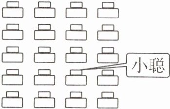 (1)小聪坐在教室的第3列、第2行(如图),用数对$(3,2)$表示。那么$(4,3)$表示的位置是第(