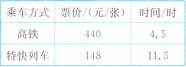 2. 李叔叔乘火车从A地到B地,决定乘车方式之前他了解到以下相关信息。