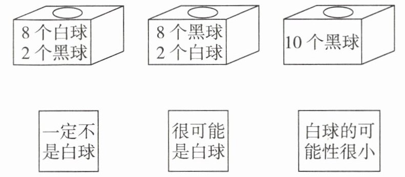 四、从盒子里摸出 1 个球,结果会是什么? 连一连。
