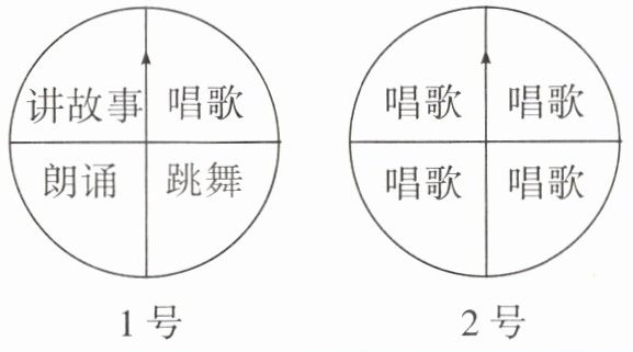 ,转2号转盘不可能表演跳舞||2. 事件发生的可能性大小|事件随机发生,可能性的大小与个体数量的多少有关。物体数量多→可能性