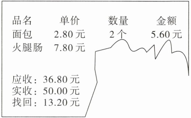 1. 下面是李奶奶在某超市购物结账后的小票,她不小心撕了一部分,请你算一算,李奶奶买了多少根火腿肠?