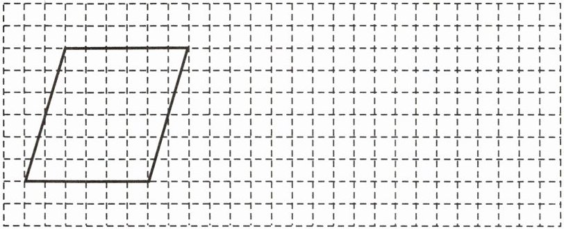 画法:从方格纸右侧另选一点开始,向右画4个小方格,然后按45°角向上画6个小方格,完成平行四边形。