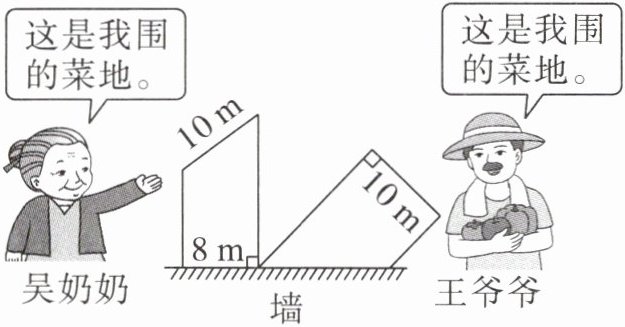 吴奶奶围的菜地面积:(40-10)×8÷2=120(m²) 王爷爷围的菜地面积:(40-10)×10÷2=150(m²) 120<150 150-120=30(m²) 王爷爷围的菜地的面积大,大30 m²。