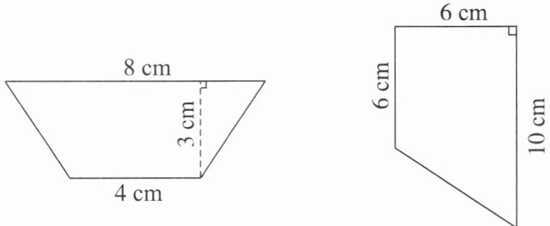(8+4)×3÷2=18(cm²) (6+10)×6÷2=48(cm²)