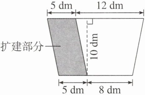 5+12=17(dm) 5+8=13(dm) (17+13)×10÷2=150(dm²) 150 dm²=1.5 m²