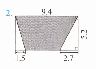 @@(9.4-1.5-2.7+9.4)×5.2÷2=37.96(cm²)