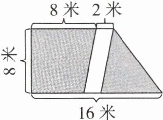 2. 一块梯形地如图所示,上底 10 米,下底 16 米,高 8 米,中间有一条宽为 2 米的平行四边形小路,其余地方种满了草,求草地(阴影部分)的面积。
