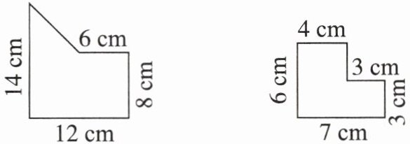 12×8+(14-8)×(12-6)÷2=114(cm²) 6×4+3×3=33(cm²)