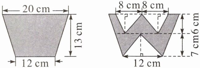 小丽用梯形彩纸剪了一个大写英文字母“W”,它的面积是多少?