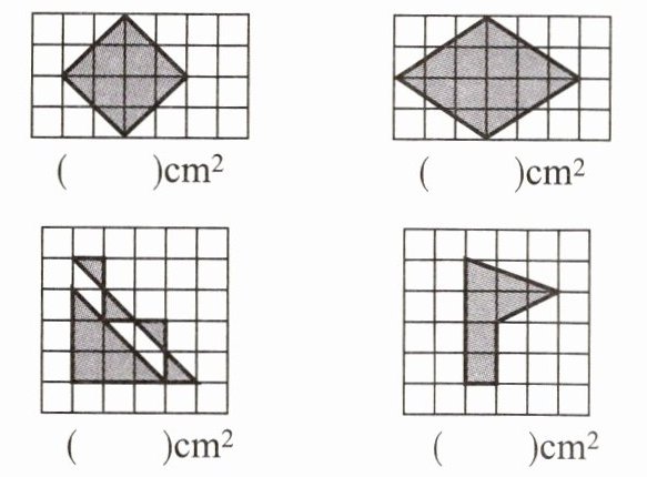 三、求阴影部分的面积。(每个小方格的面积是$1cm^{2}$,不满1格按半格计算。)