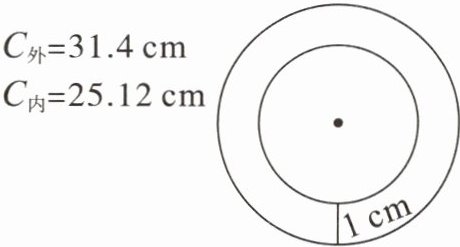 2. 大圆的周长 $C = 31.4$ cm,小圆的半径 $r = 2$ cm。