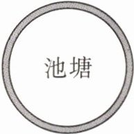 1. 如图,该池塘的周长是 $251.2$ m,池塘周围(阴影部分)是一条 $5$ m 宽的水泥路。水泥路的面积是多少?