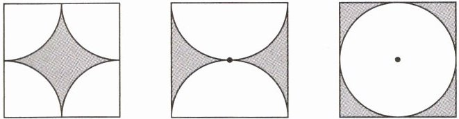 下面三个正方形的边长都是4 cm,阴影部分的面积相等吗?为什么?