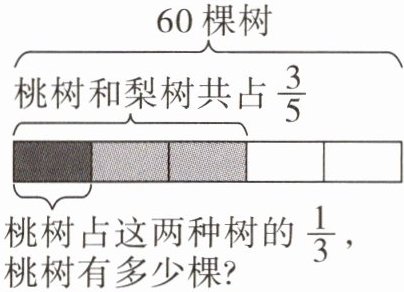 1. $60× \frac{3}{5}× \frac{1}{3}=12$(棵) 2. $32× \frac{3}{4}× \frac{2}{3}=16$(个)