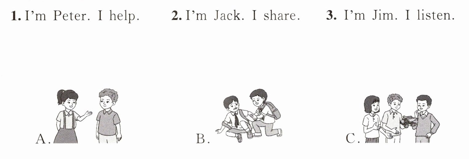 | A. I smile. | B. I help. | C. I listen. | D. I share. |