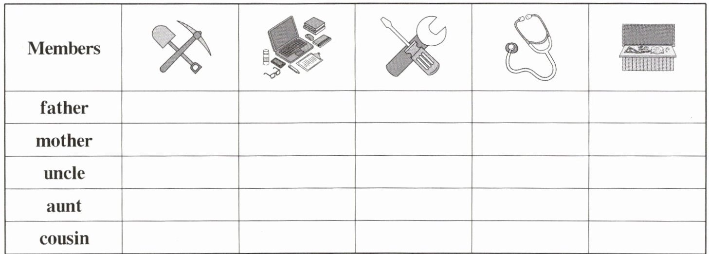 M: Hello, my name is John. I have a happy family. There are six people in my family. My father is a factory worker. He's helpful. My mother is busy. She is an office worker. My uncle is a doctor and my aunt is a farmer. My cousin is a teacher. I love my family very much.