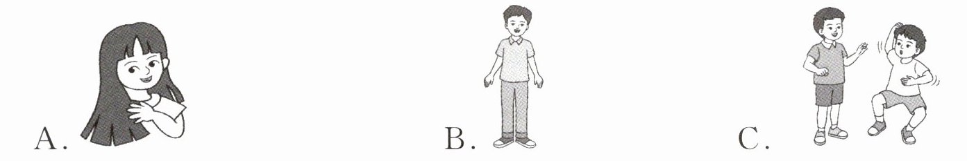 三、Mike 正在介绍自己的好朋友,请根据图片,选择合适的选项帮他完成介绍。