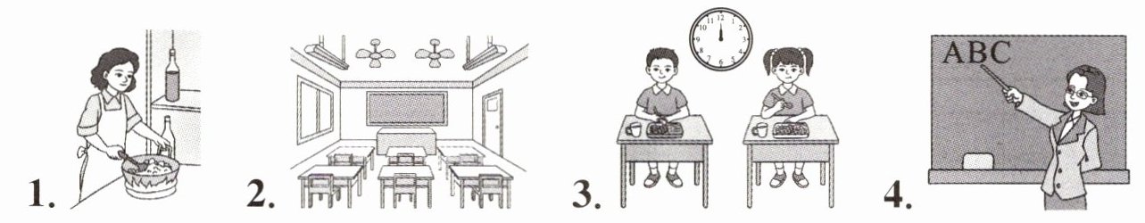 1. kitchen 2. chairs 3. lunch 4. teacher