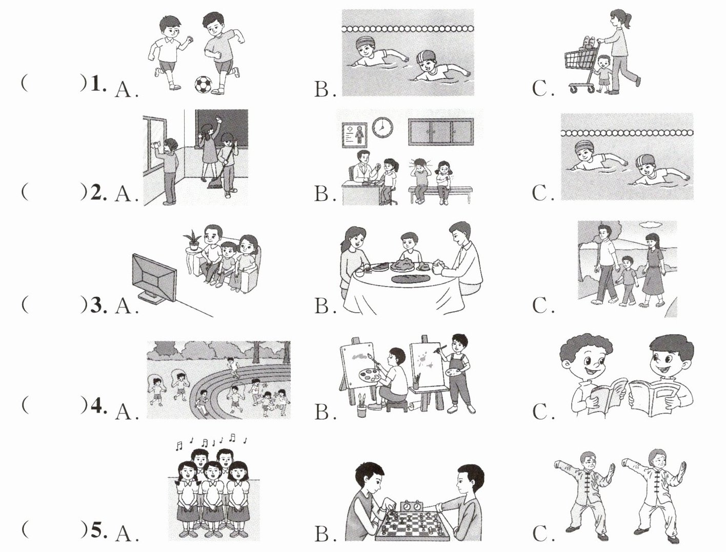 一、听录音,选出与你所听内容相符的图片。读两遍。