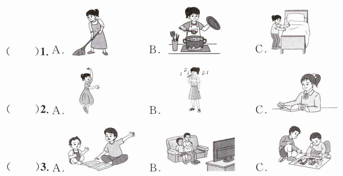 )3. Lily is ______ now.A. dancing B. singing C. reading