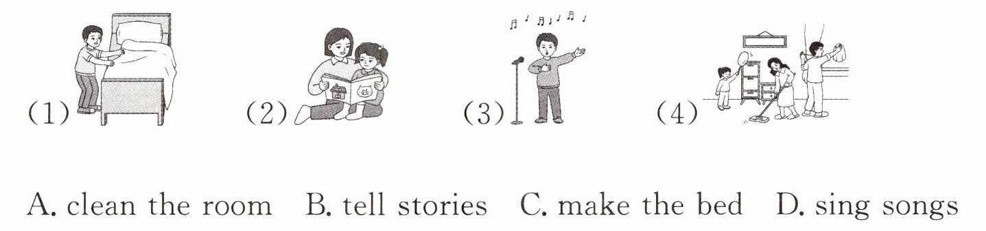 )3. 描述他人正在做什么的句型。A. He is sweeping the floor.