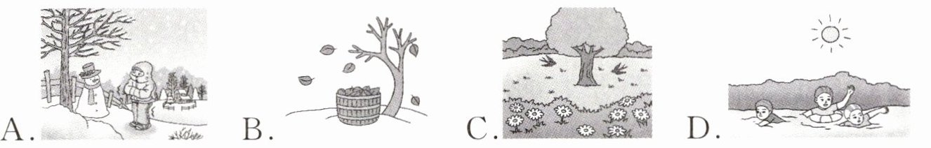 (1)spring ____ (2)summer ____ (3)autumn ____ (4)winter ____
