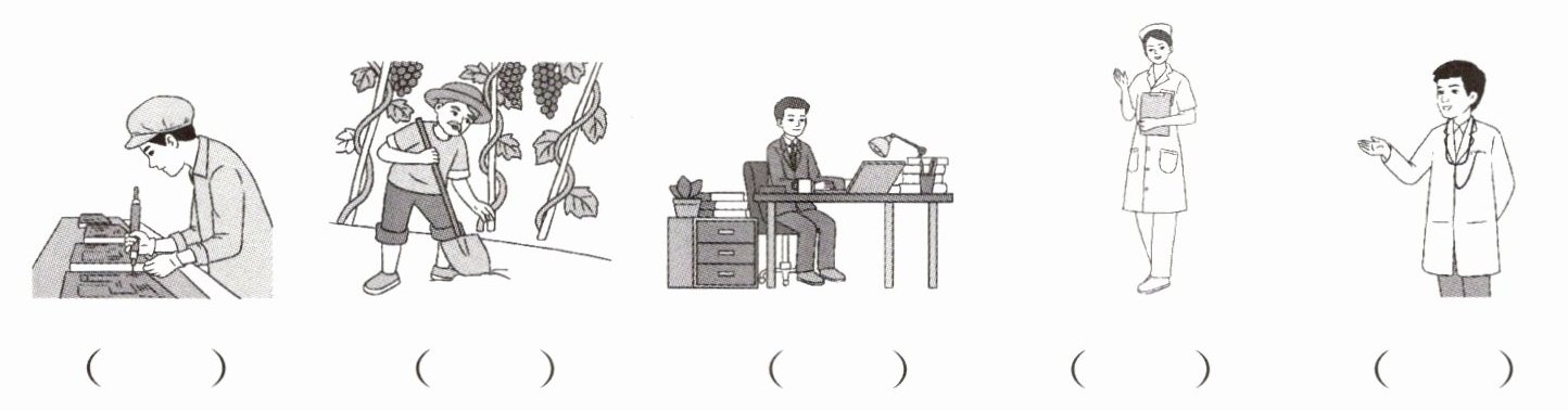 1. My grandfather is a farmer. 2. Linda's mother works in a hospital. She is a nurse. 3. He's a doctor. He often helps people. 4. His uncle is an office worker. 5. My brother is a factory worker.