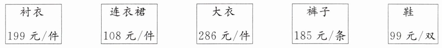 刘阿姨买了一件大衣、一条连衣裙和一双鞋,陈阿姨买了一件衬衣、一条裤子和一双鞋,谁花的钱多?两位阿姨一起付钱可以获得暖水壶吗?