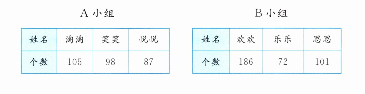 2. 跳绳比赛,A 小组和 B 小组一分钟跳绳情况如下表。估一估,哪个小组跳的总个数多?写出你的想法。