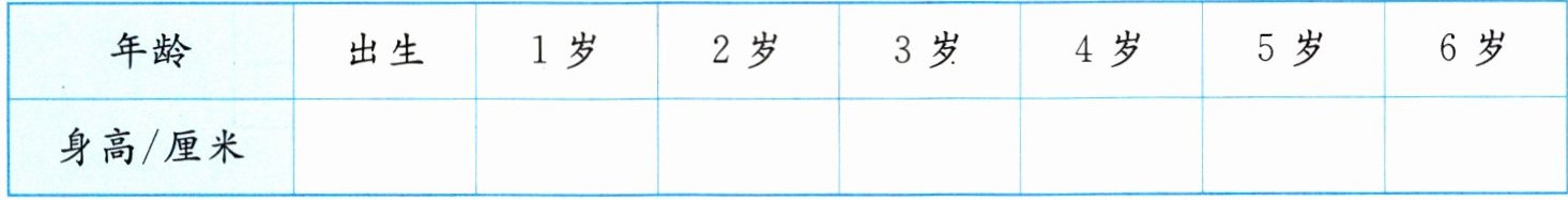 4.(综合与实践)请了解自己从出生到 6 岁的身高并填写下表。