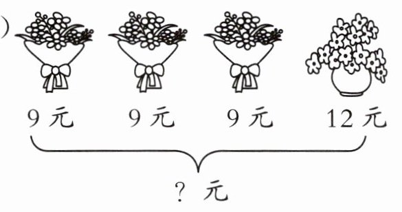 (2) $9 × 3 + 12 = 27 + 12 = 39$(元)