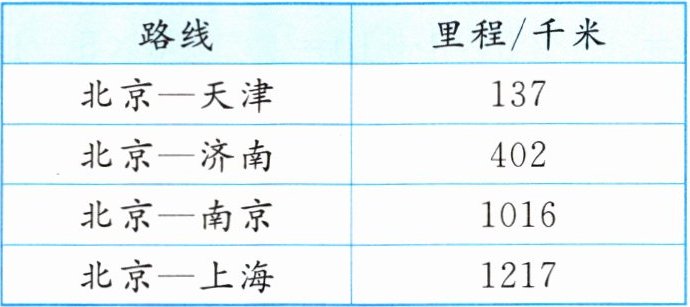 5. 下面是“北京—上海”沿线各大站的火车里程表。