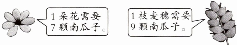 解答:2朵花需要的南瓜子数量:$2×7=14$(颗)