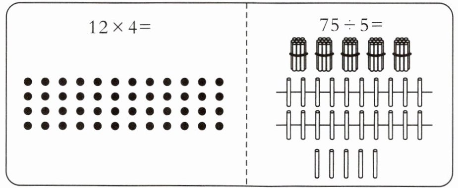 综上,$12×4 = 48$;$75÷5 = 15$。