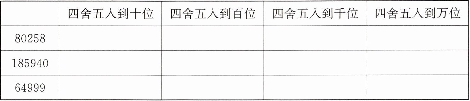 总结:求一个数四舍五入到万位的近似数,先找到万位,看万位后面千位上的数字,如果比 5(